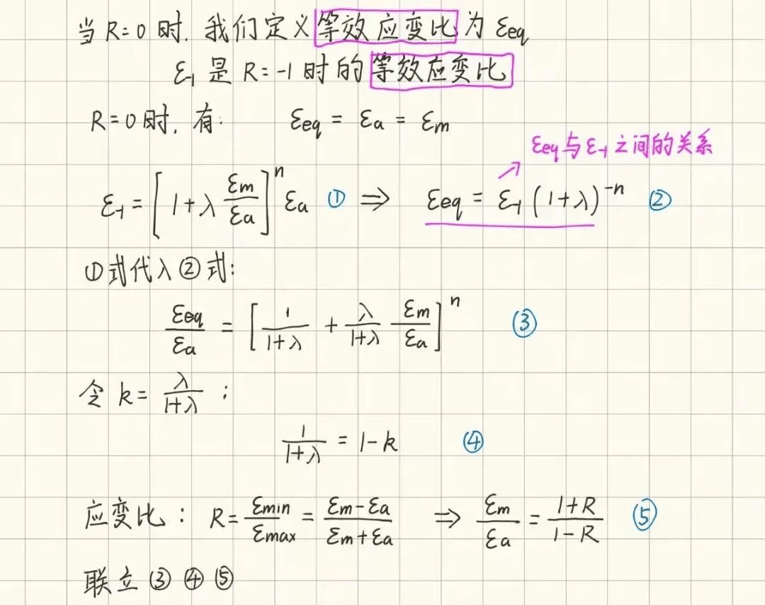 本质上这些公式是求出一个等效应变幅值,代入别-狈曲线中,求解寿命。